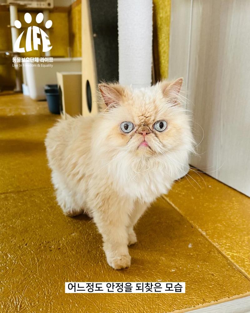 현장은 어수선했고, 낯선 사람들의 방문에 놀란 눈을 한 고양이를 마주했습니다. 아이는 배가 고팠는지 사료 봉투를 뜯어 먹으며 버텨온 듯 보였습니다.