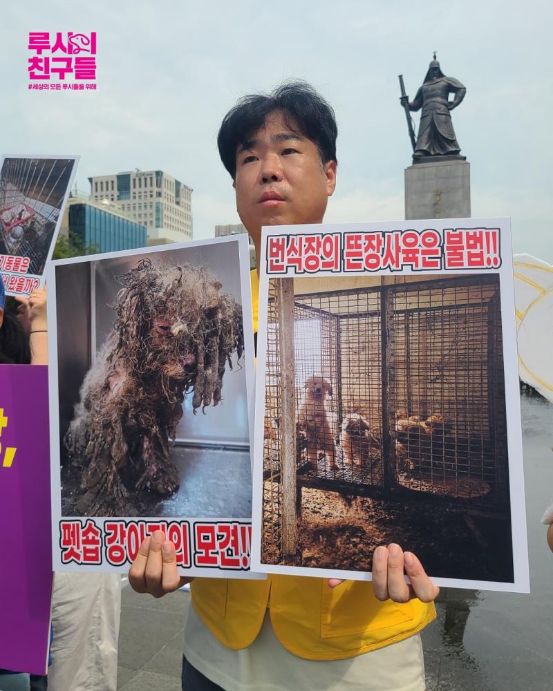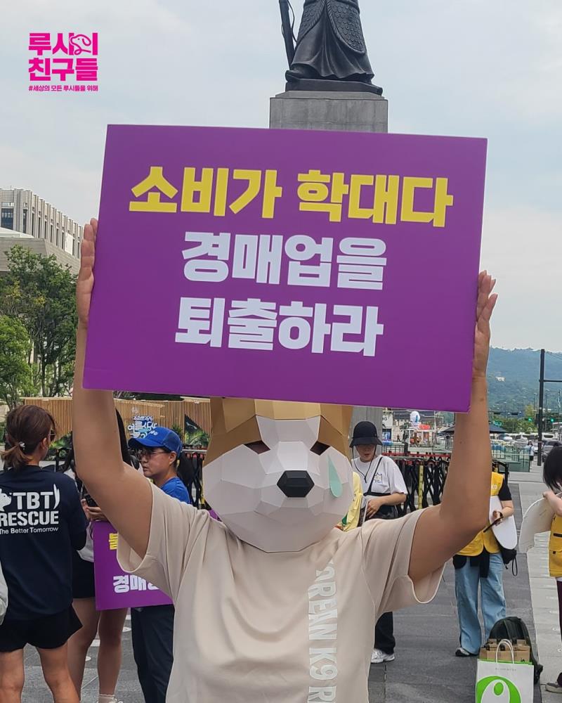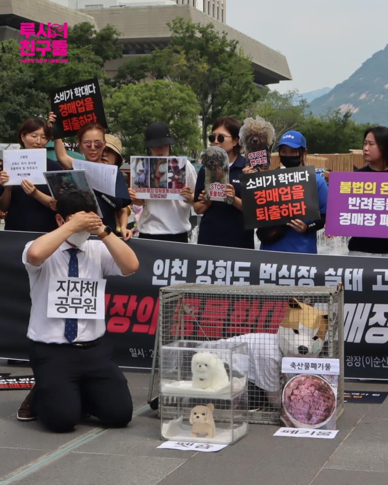 루시의 친구들은 현행 동물생산판매 제도의 심각한 문제를 방관하고 있는 정부를 규탄하고 허가된 지옥,