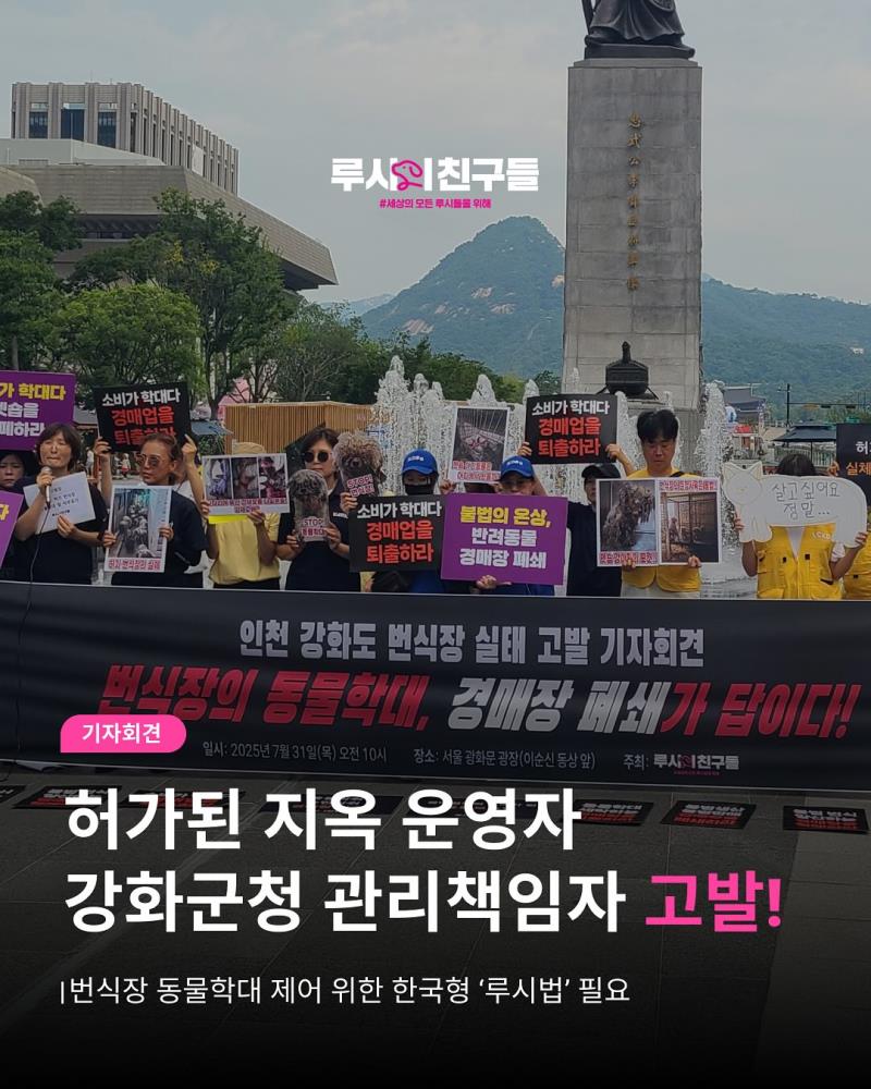 루시의 친구들은 번식업자/강화군수/강화군청 축산과 반려동물 담당 공무원 모두를 고발했습니다.