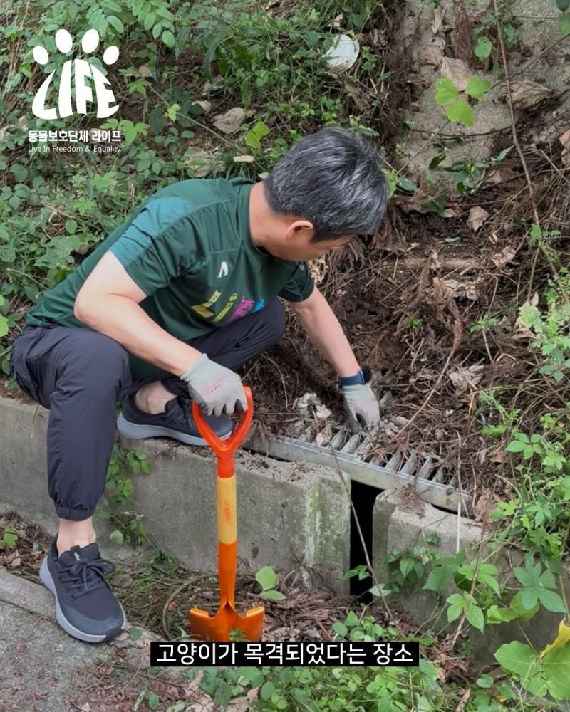 제보자는 가지고 있던 간식과 사료를 떨어트려주었고, 잠시 기다리니 허겁지겁 먹는 새끼 고양이를 볼 수 있었습니다. 라이프는 전화를 받고 급히 일정을 잡아 구조에 나섰습니다.