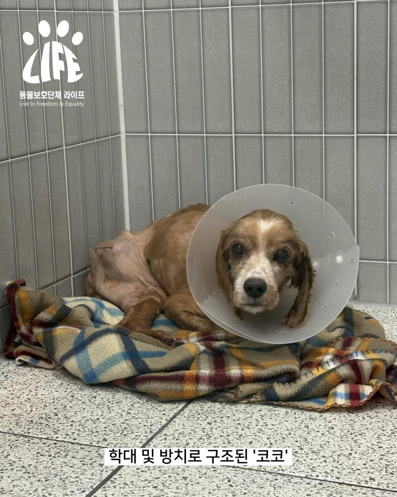 1년 전, 학대와 방치 끝에 구조된 ‘코코’는 뼈마디가 드러날 정도로 심각한 저체중, 대퇴부 골절, 심장 사상충까지.. 말로 표현하기도 어려운 상황에 놓여있었습니다.