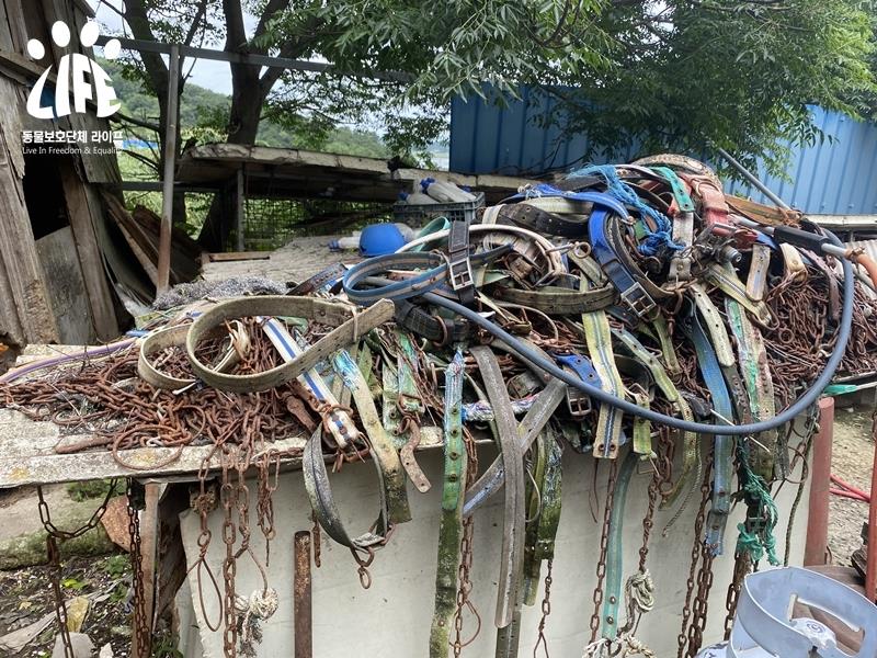 하고 있던 목줄이 수북하게 쌓여 있었습니다.