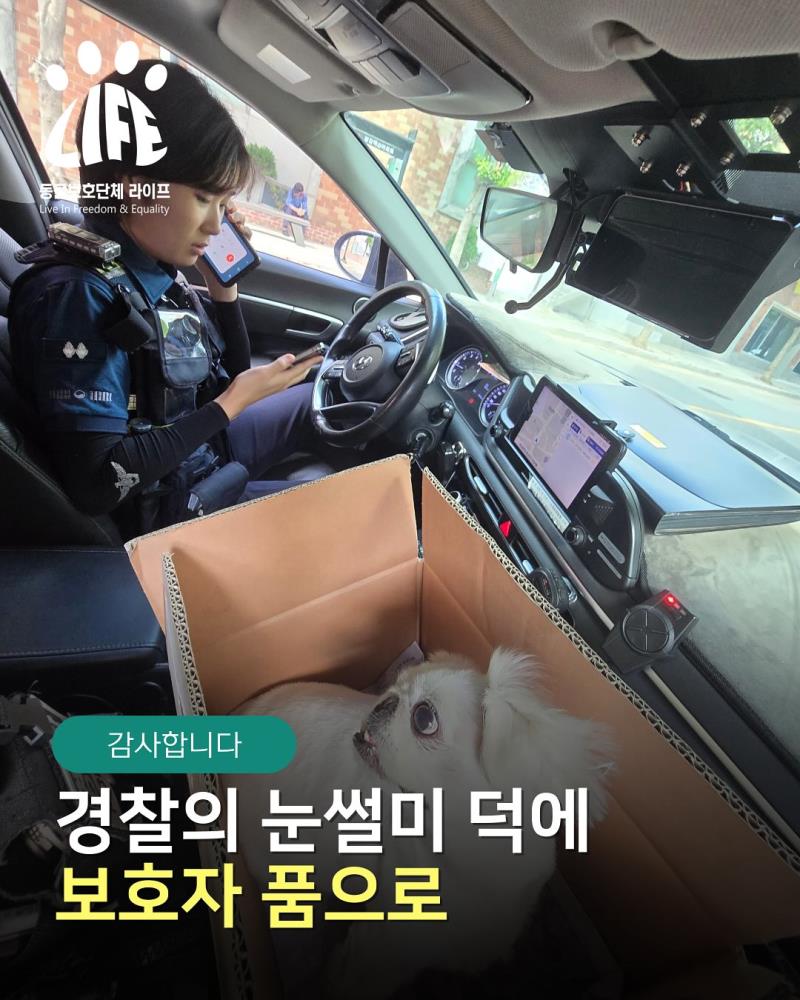 경찰과 연락이 닿은 가족은 ‘성당에 간 사이 문이 열려나갔다’며 지구대를 방문해 소중한 가족, 반려견을 품에 안을 수 있었습니다.