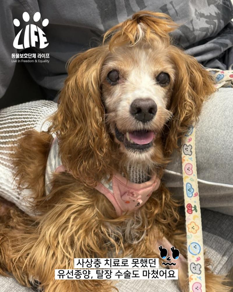 사상충 완치 판정을 받고, 사상충 치료로 할 수 없었던 유선종양 수술과 탈장 수술도 무사히 마쳤답니다. 여러분이 함께 만들어 낸 기적이예요.