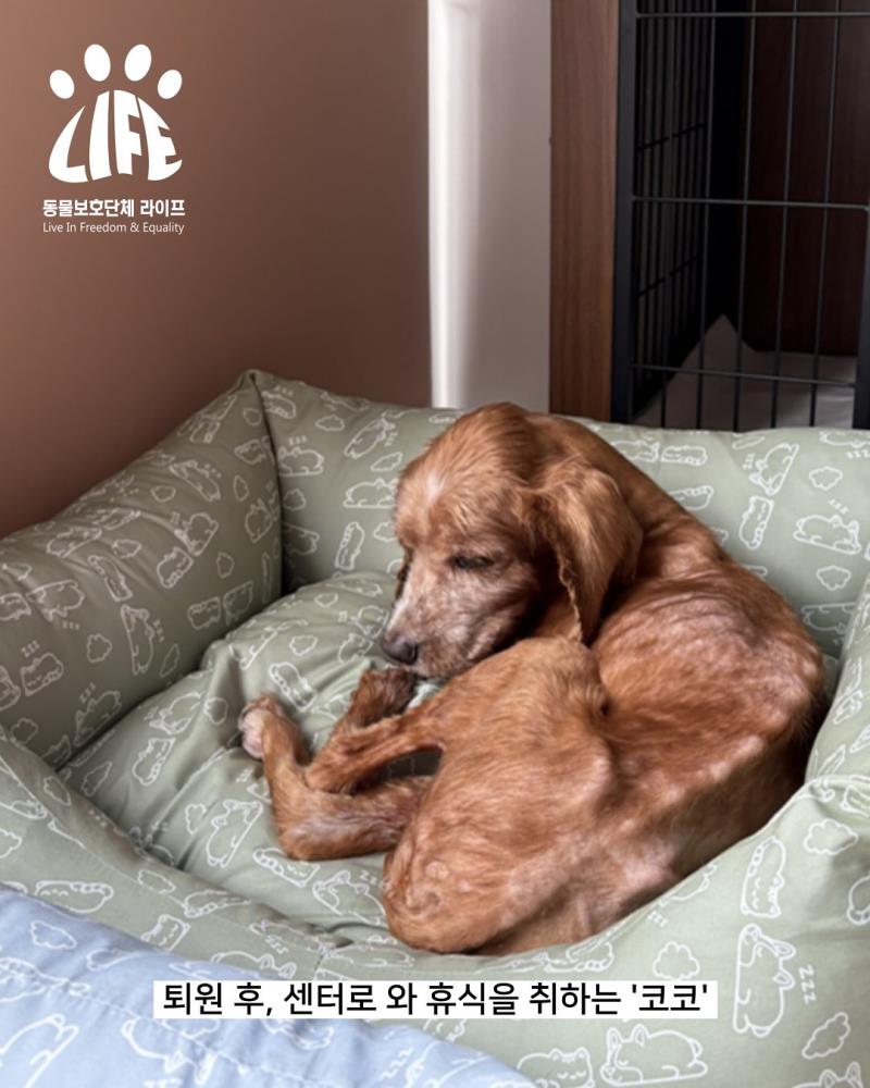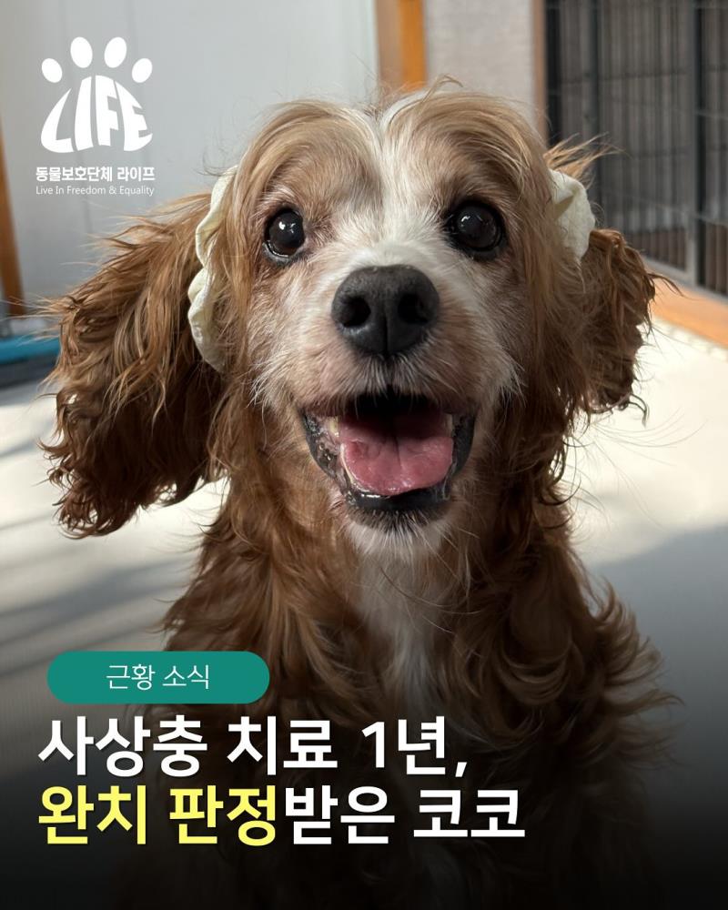삶의 끝자락에 있던 코코는 라이프의 품으로 오게 되었고, 매일의 약과 정기 검사 그리고 꾸준한 치료를 받을 수 있었어요!
